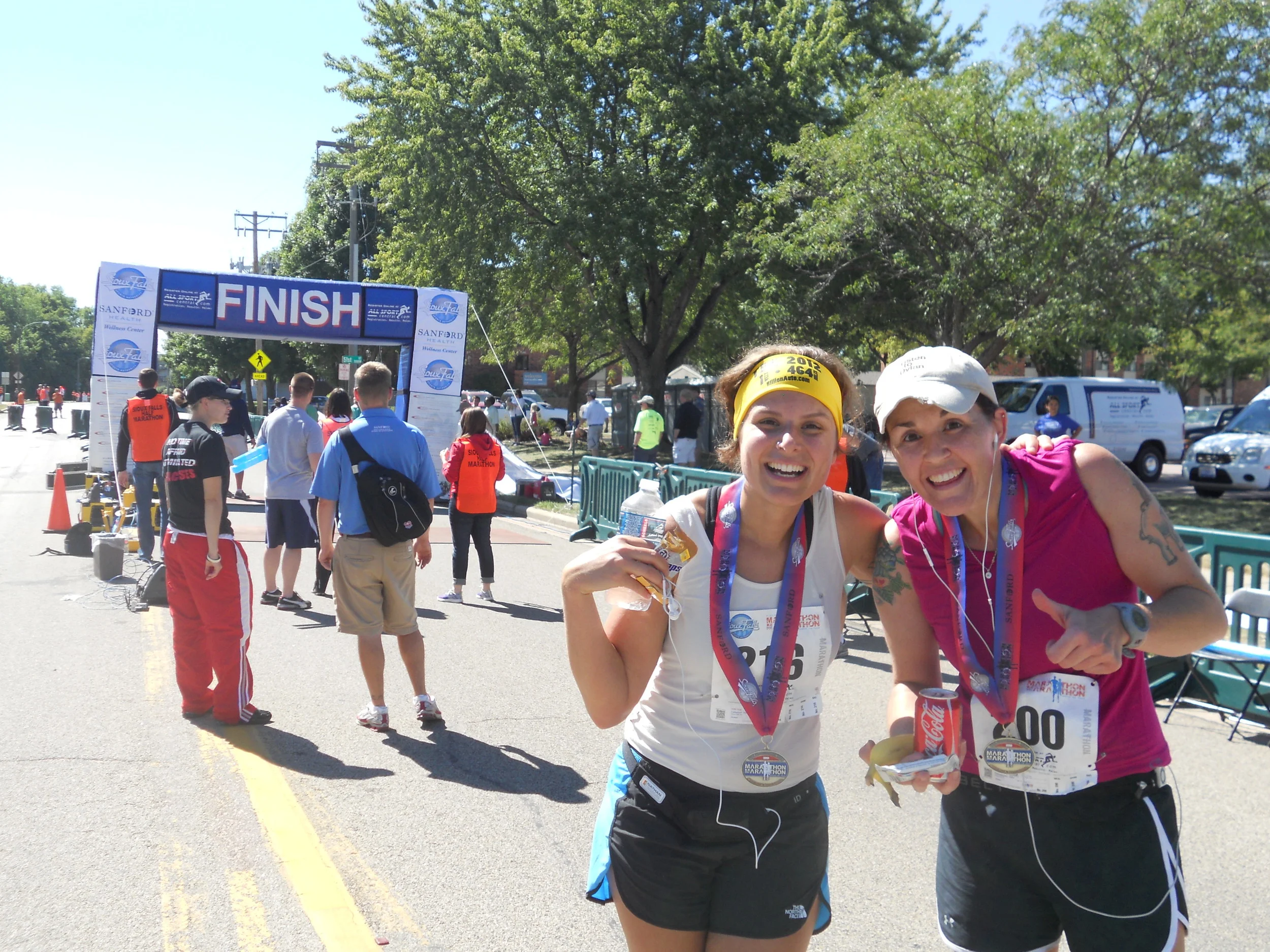 We did it. I hit the finish line with enough sass to tell the announcer just to call me, “Schooly” as he was searching for my name. I got that finisher medal.